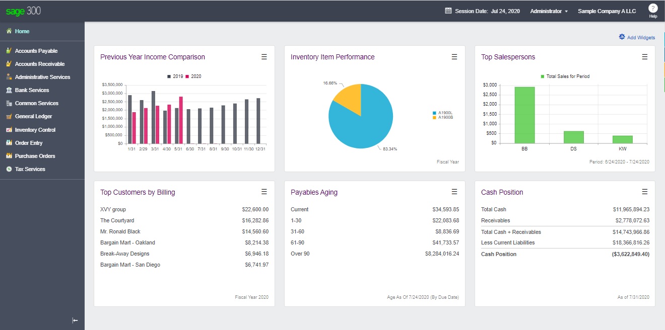 Sage ERP 300 helps reduce costs and boost productivity with fast, integrated accounting and financial management software. Sage 300 ERP integrates your sales and service functions for streamlined, end-to-end financial management. Powerful, flexible tools improve financial reporting and compliance and provide better business intelligence for a greater ROI.